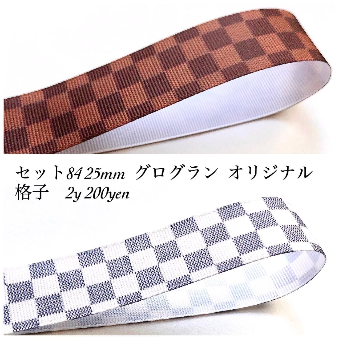 セット84 25mm オリジナル 格子 グログラン リボン 2y セット