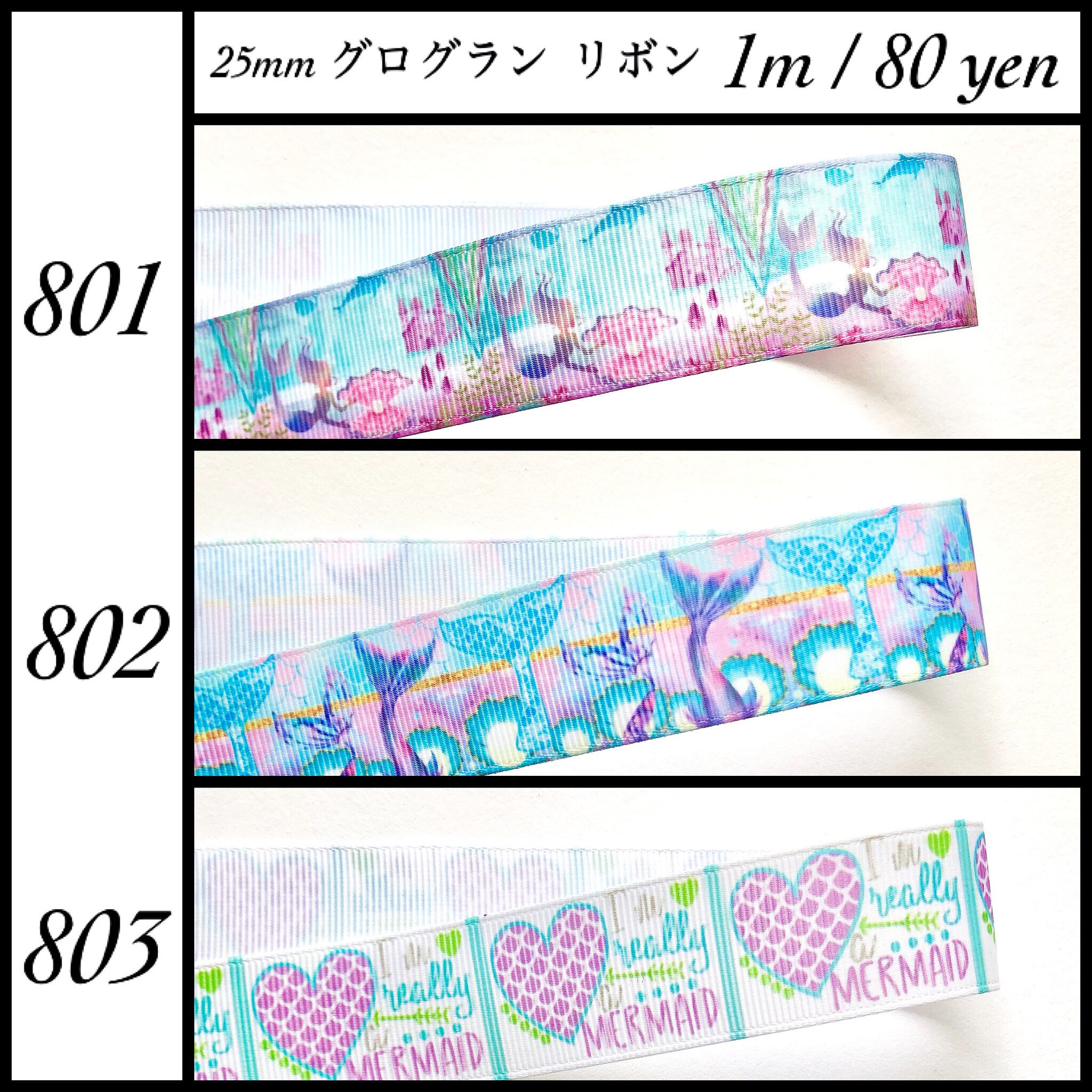 801 802 803 25mm グログラン リボン マーメイド
